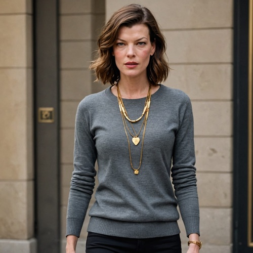 Typical of most Romulan women, she's tall and slender. Her hair is shoulder length and with few of the more common to other Romulans fetures. She's typically dressed in more federation styles, especially human with her own flare. |