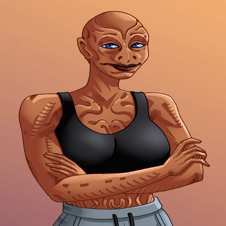 | Physical Description | Sava isn't particularly curvy, as with most women of her species, but she could certainly be considered physically attractive by humanoid standards, even if she quite obviously isn't quite humanoid. Tall, well-proportioned like a swimmer is and toned in limb and body she tends to draw eyes wherever she goes. |